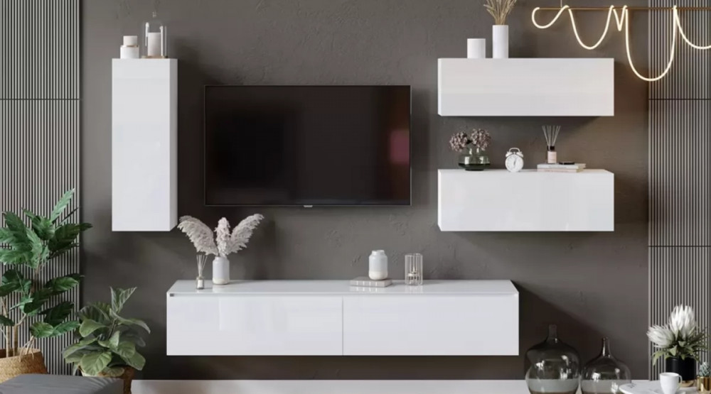 Гостиная «Глосс» №8 Белый глянец/Стекло Белый глянец/Белый в Тюмени