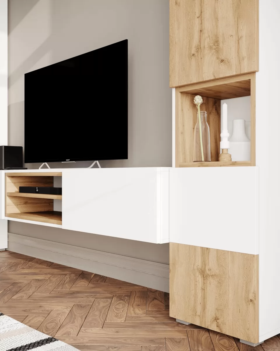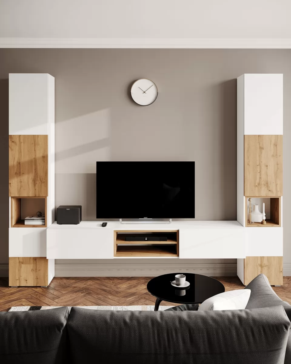 Милана - это модульная лаконичная, современная гостиная. Состоит из двух модулей: тумбы ТВ и пеналов. Приобрести можно как отдельно, так и полный комплект вместе