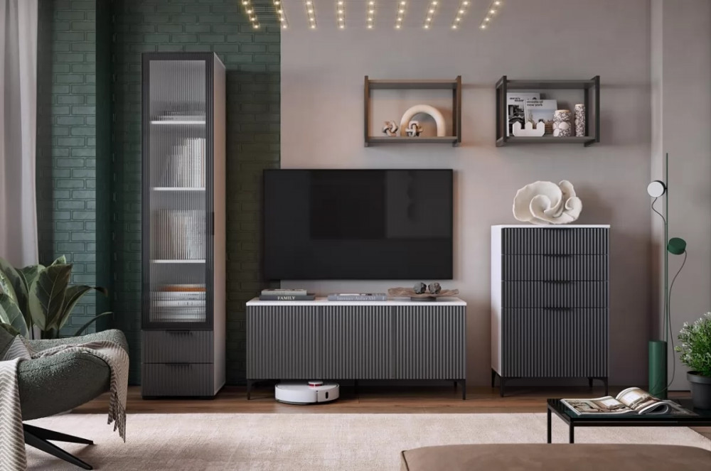 Гостиная Зефир К2 белое дерево/черный муар/серый/графит в Тюмени