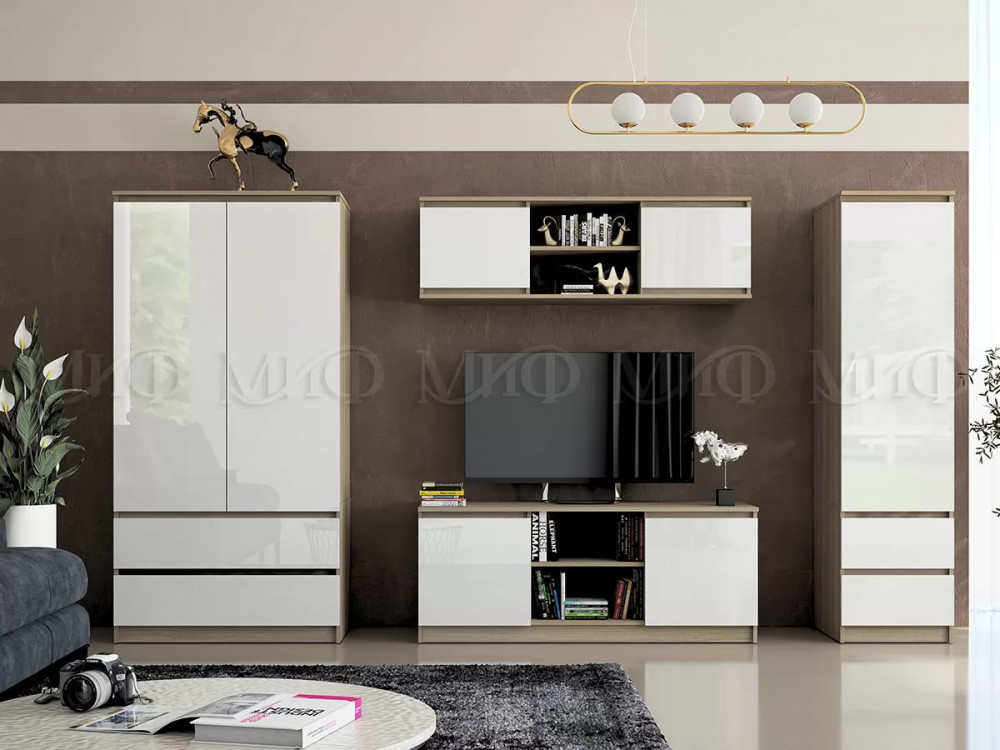 Модульная гостиная Челси Белый глянец холодный, сонома в Тюмени