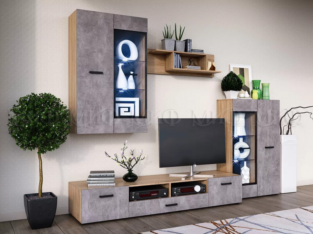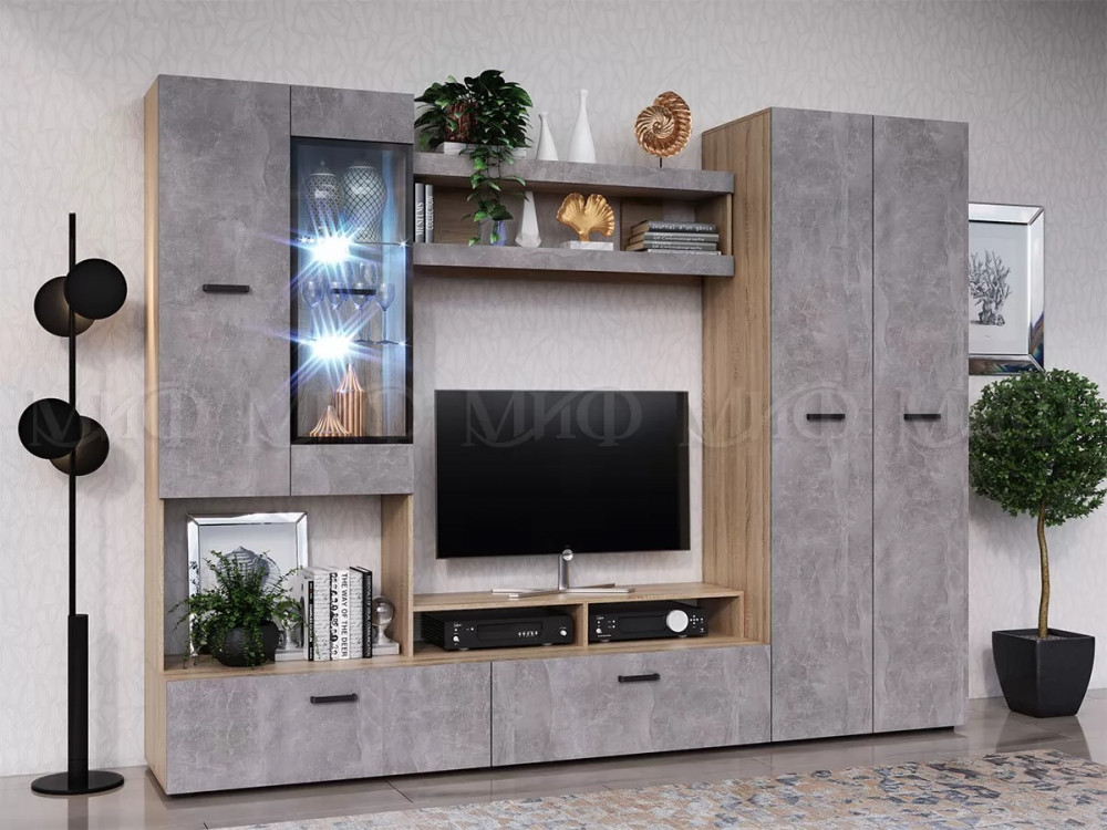 Модульная гостиная Нэнси New ЛДСП Бетон светлый/Сонома в Тюмени