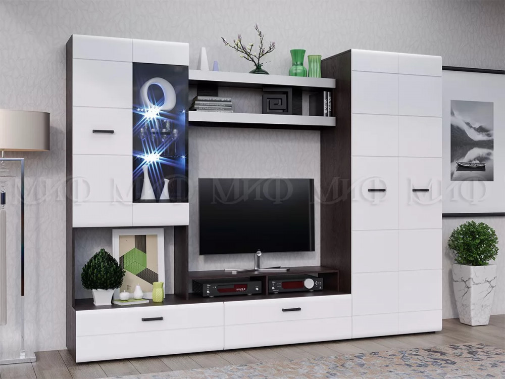 Модульная гостиная Нэнси New МДФ Белый глянец холодный-Венге в Тюмени
