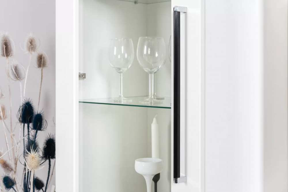 Контрастное, графичное и стильное сочетание черного и хромированных деталей эффектно расставляет акценты на мебели.