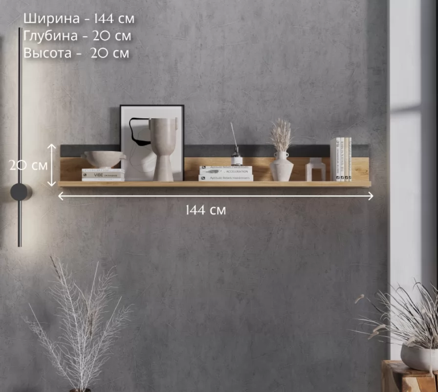 Полка Grace дуб наварра/графит POL/140 станет универсальным решением для гостиной, столовой, прихожей или спальни.