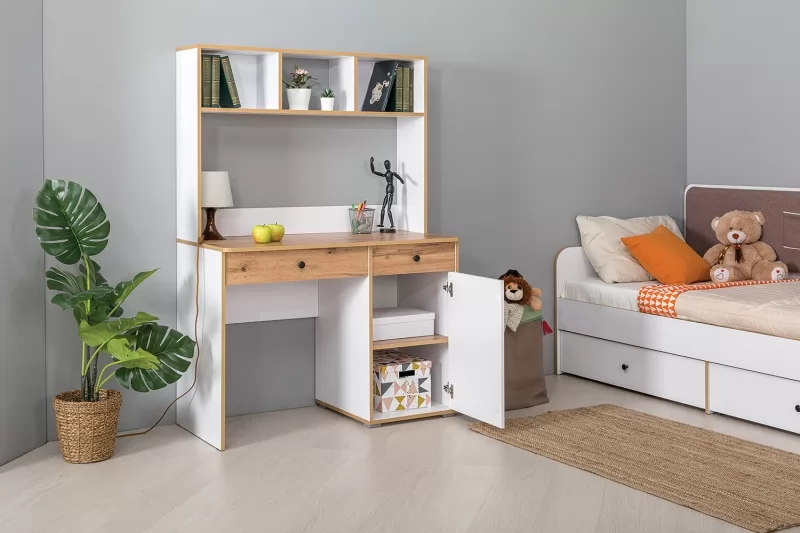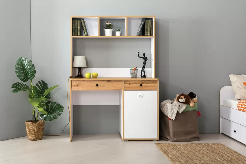 Надстройка на стол Вуди 13.161 будет отличным дополнением интерьера уютной детской. Изделие предоставит дополнительное место для размещения интересных книг, семейных фотографий, необычных статуэток, оригинальных декоративных предметов и многого другого.