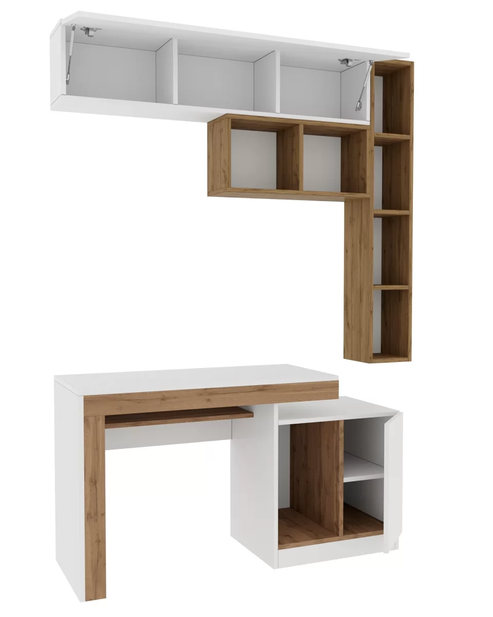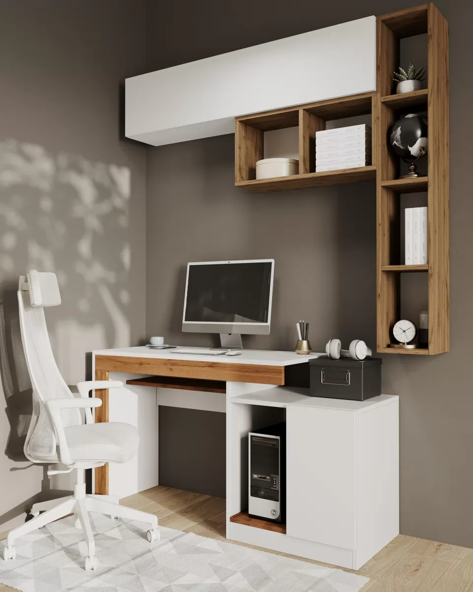 Компьютерный стол состоит из модулей, которые можно собрать по вашему вкусу. Он современный, компактный и удобный, идеально подходящий как для дома, так и для офисных помещений.