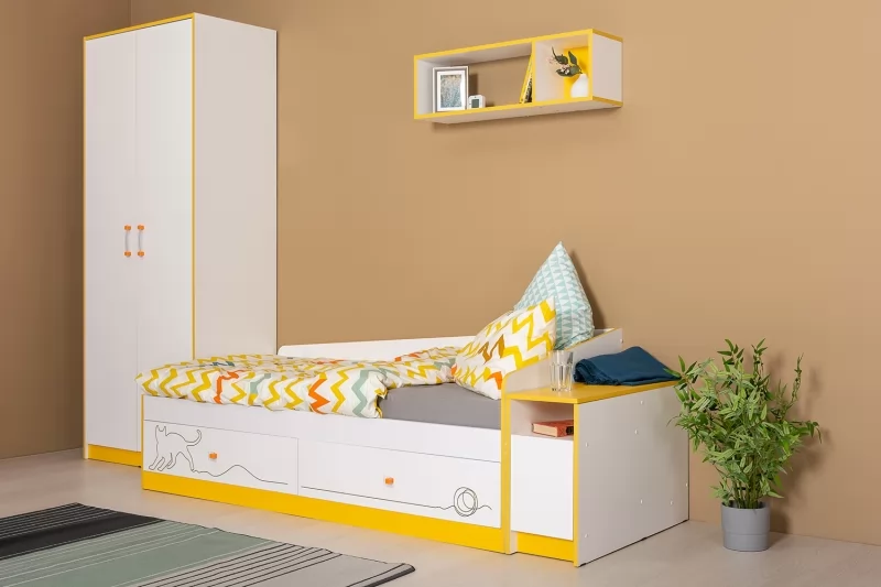 Многофункциональная модульная система Альфа для детской комнаты выполнена в модном сочетании монохрома и ярких, цветных, графичных линий. Особый акцент ставят прозрачные ручки с цветным основанием софт-тач. Коллекция изготавливается в двух цветовых решениях: жизнерадостный «солнечный свет» или свежий «зеленый лайм», можно создавать комбинации в одном цветовом решении или сочетать модули разных цветов между собой.