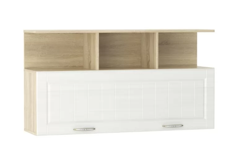 Навесную полку Оливия НМ 040.50 Х можно заполнить большим количеством книг. Нижняя часть модуля оснащена глухим фасадом, который защитит внутреннее содержимое полки от пыли. Для удобства открывания на дверце предусмотрены не одна, а две ручки. Верхние открытые отсеки полки подойдут для демонстрации декоративных элементов.