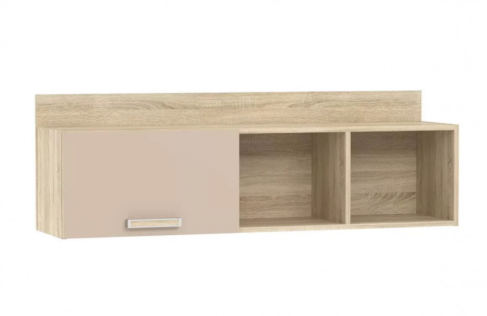 Полка НМ 011.38-01 М1 органично дополнит рабочее место в детской. Закрытая секция модуля подойдет для хранения книг. Газлифты максимально высоко поднимают фасад вверх, обеспечивая большую площадь обзора содержимого. Предметы декора будут хорошо смотреться в открытых секциях полки.