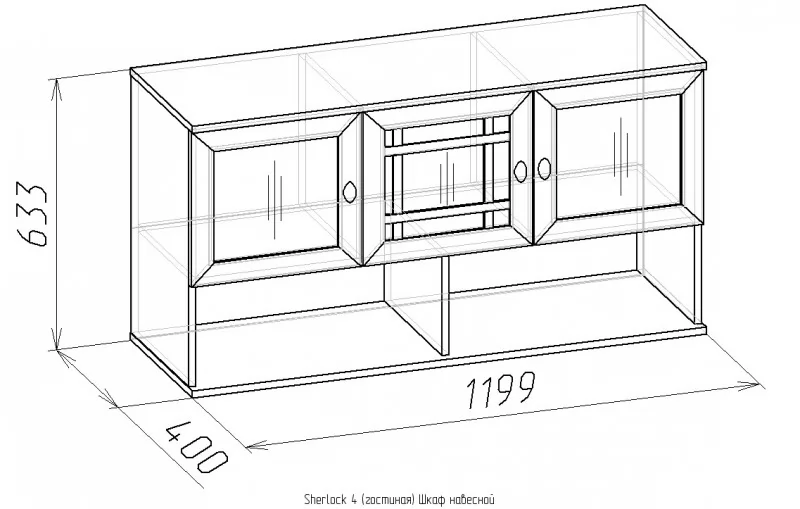 Навесной шкафчик уместно дополняет компоновку с тумбой под ТВ Sherlock 3 или с письменным столом Sherlock 115. Благодаря подвесам, его можно расположить на стене на любой высоте, как отдельный модуль, или закрепив между двумя высокими шкафами. Его можно повернуть и навесить так, чтобы открытая ниша оказалась сверху. Выдерживает нагрузку до 80 кг. Высота открытой полки составляет 235 мм. Благодаря услуге Ширина ВРАЗМЕР, ширину Шкафа навесного можно изменять на 150 мм в сторону увеличения и уменьшения с шагом в 1 мм.