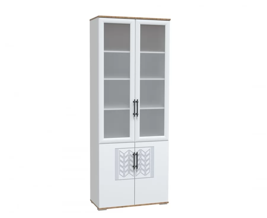 Вместительный модуль для хранения книг. Верхняя секция закрыта рамочными фасадами с матовыми стеклами Сатин.