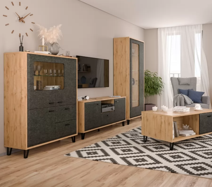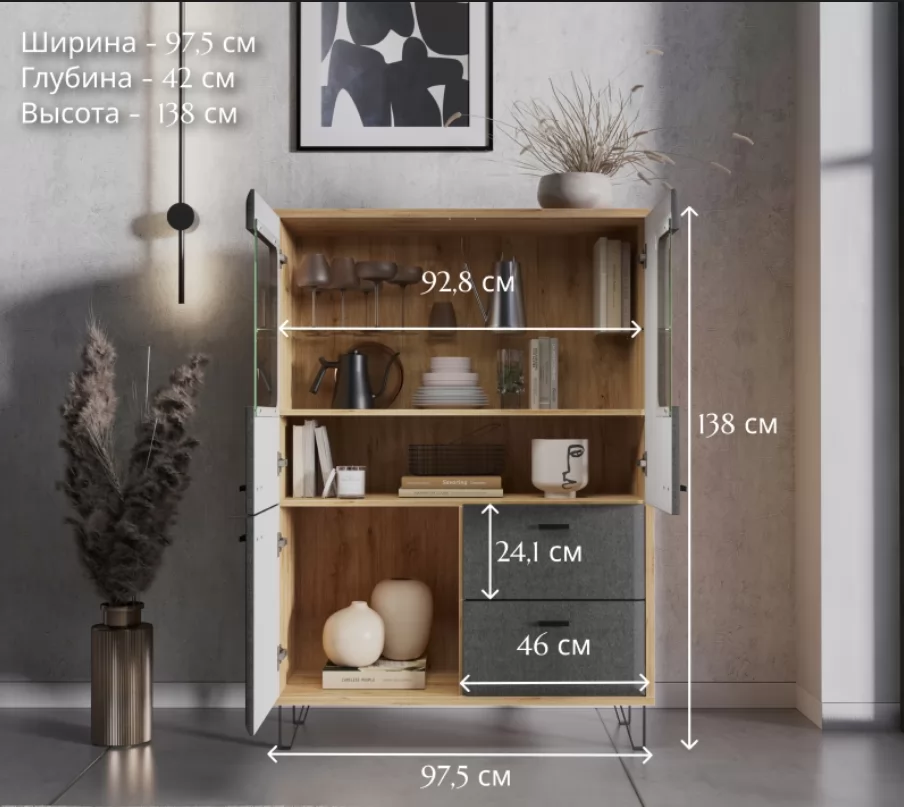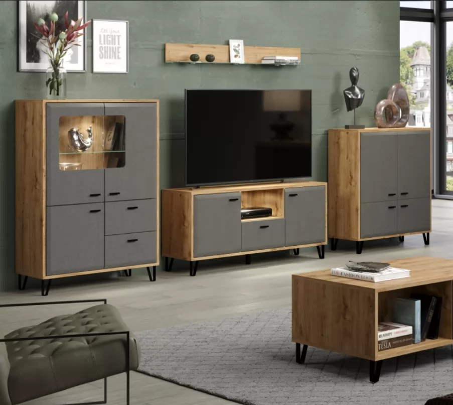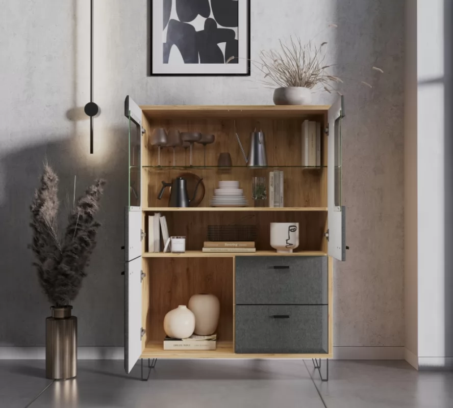 Комбинированная тумба-витрина Grace дуб наварра/графит KOM2W1D2S украсит собой кабинет или гостиную.