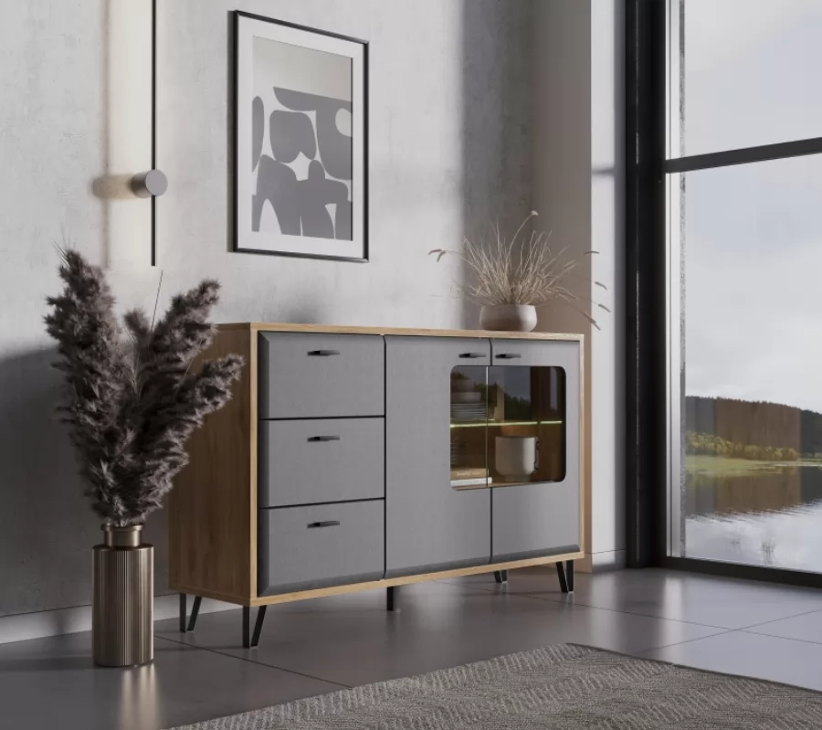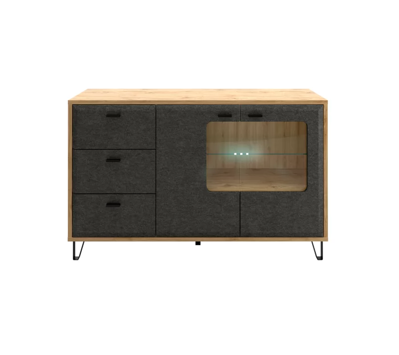 Комбинированная тумба-витрина с подсветкой Grace дуб наварра/графит KOM2W3S благодаря своей компактности станет оптимальным решением для небольших комнат.