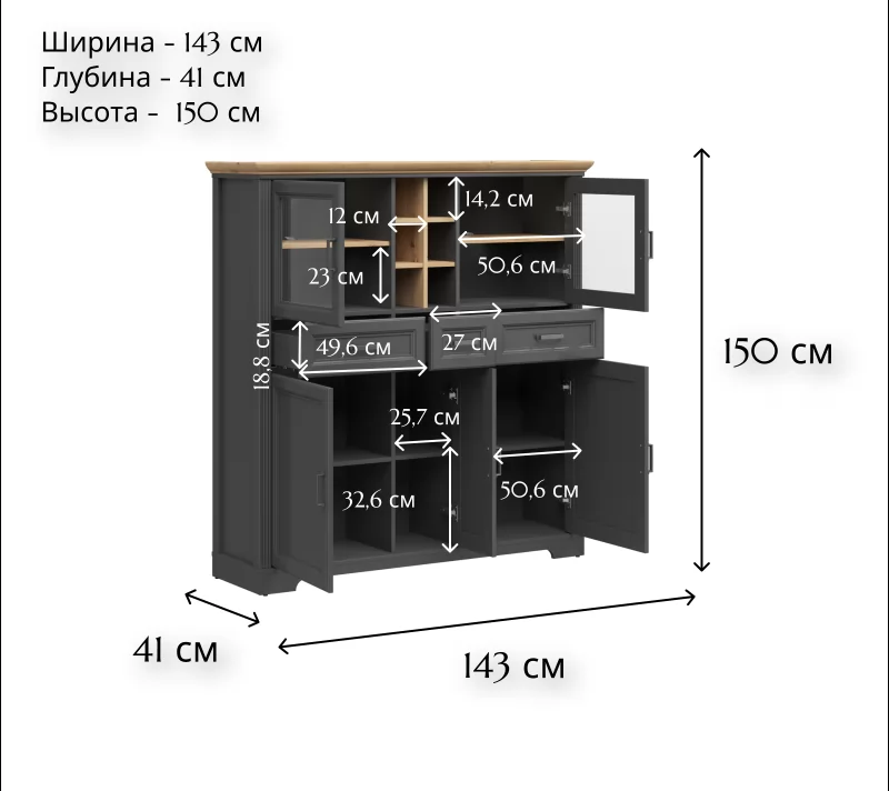 | Размер (ШxВxГ) | 1430x1500x410 мм |