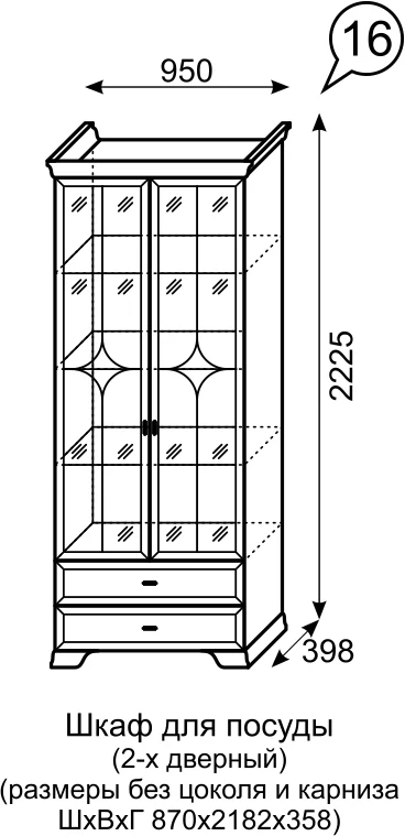 Шкаф для посуды 2-х дверный «Венеция» №16 в Тюмени