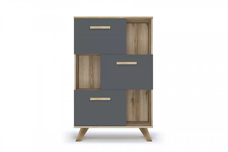 Шкаф низкий с нишами "Вега Скандинавия" Дуб каньон/Силк флай в Тюмени