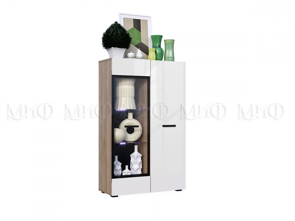 Шкаф-стекло исп.2 Нэнси New ЛДСП Белый глянец/Сонома в Тюмени
