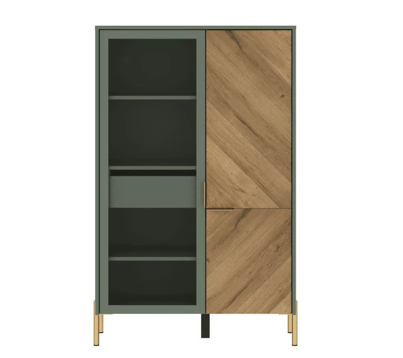 Витрина Siena дымчатый зеленый/дуб вотан REG1W1D/140 — то стильное и практичное решение, идеально подходящее для гостиной или столовой.