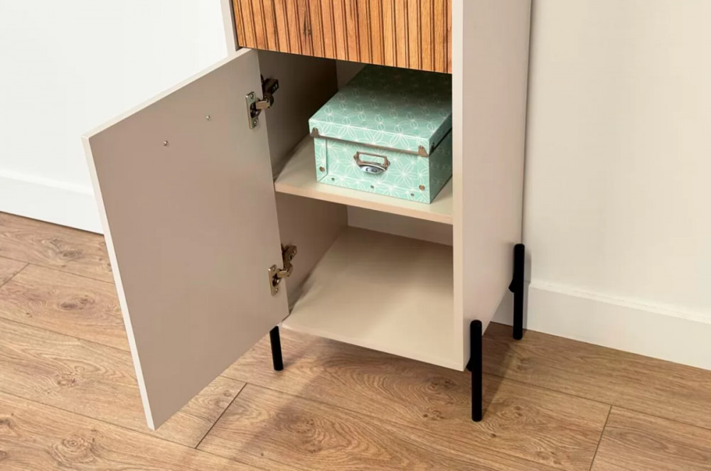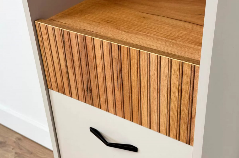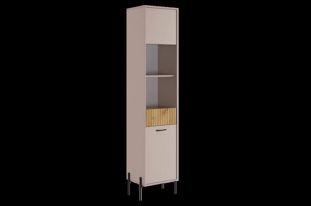Стеллаж оснащен комбинацией открытых и закрытых полок, что позволяет вам гибко управлять пространством. Открытые полки идеально подходят для демонстрации декоративных предметов или книг, в то время как закрытые полки обеспечивают скрытое пространство для хранения.