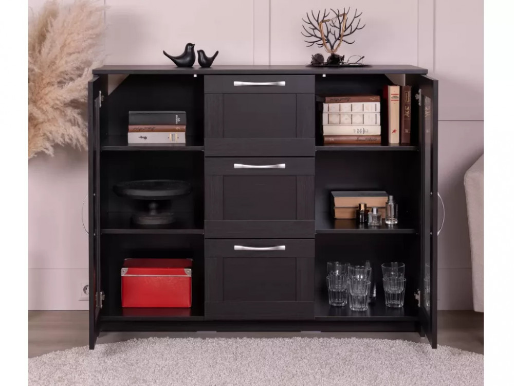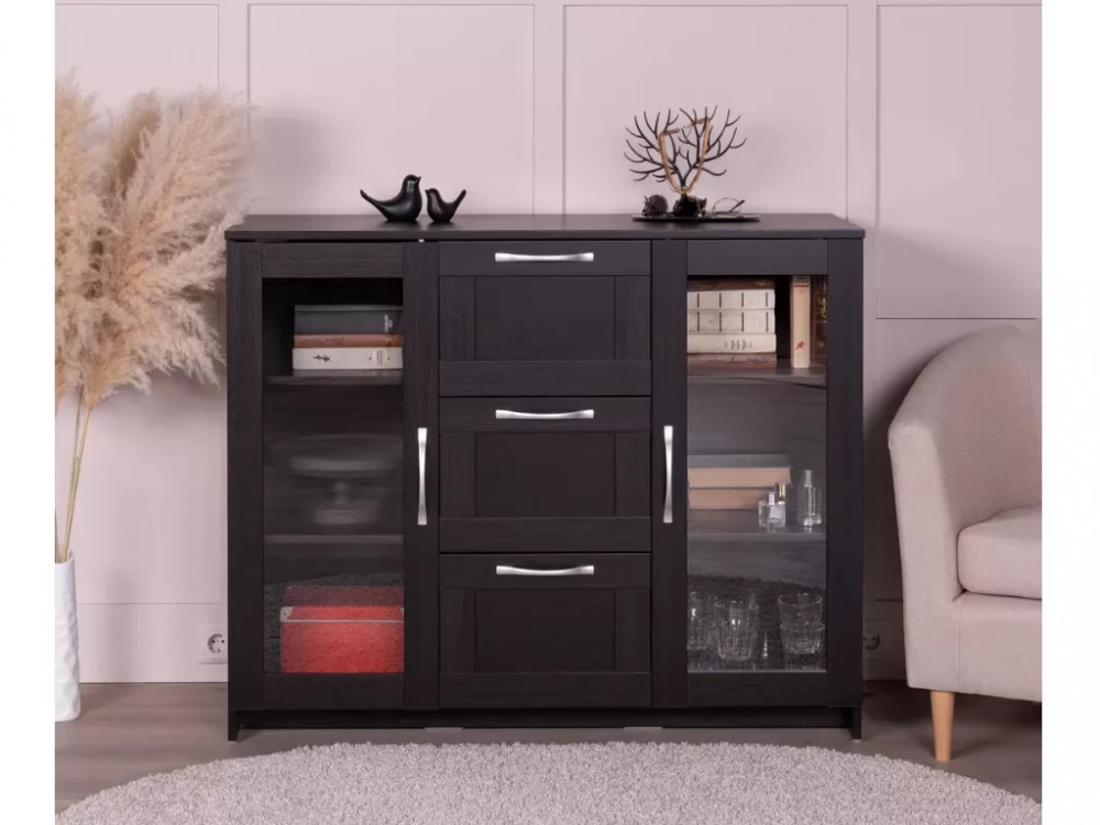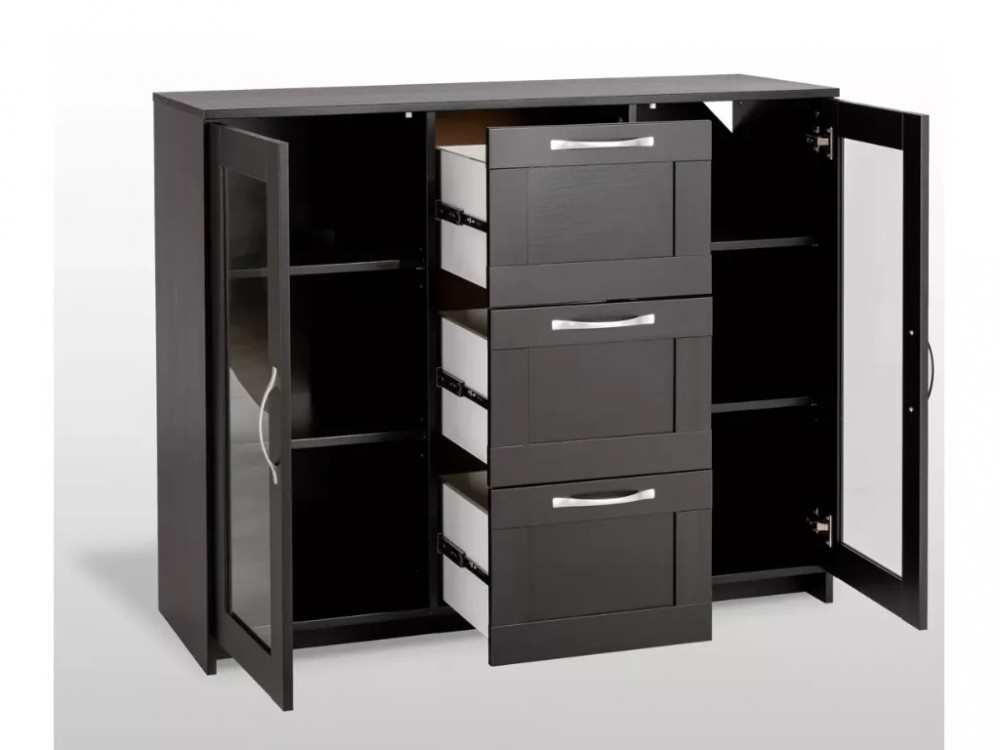 Тумба 2 двери со стеклом и 3 ящика Сириус 117х95 Дуб Венге в Тюмени