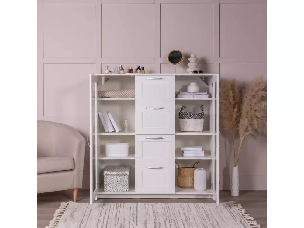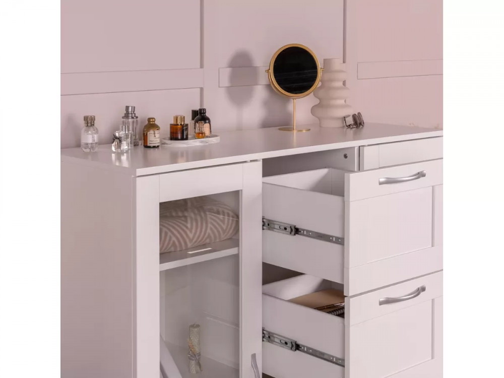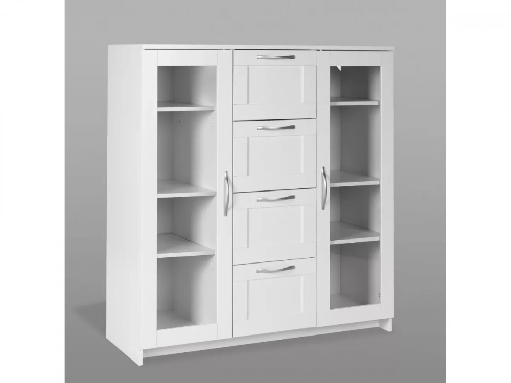 Тумба 2 двери со стеклом и 4 ящика Сириус 117х123 белая в Тюмени