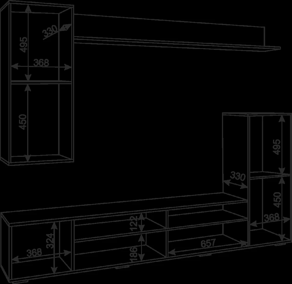 2. Гостиная состоит из двух частей: монолитной напольной и навесной.