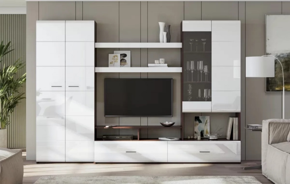 Мебель для гостиной МГС-7 Исполнение 1 Дуб Венге/Белый глянец в Тюмени