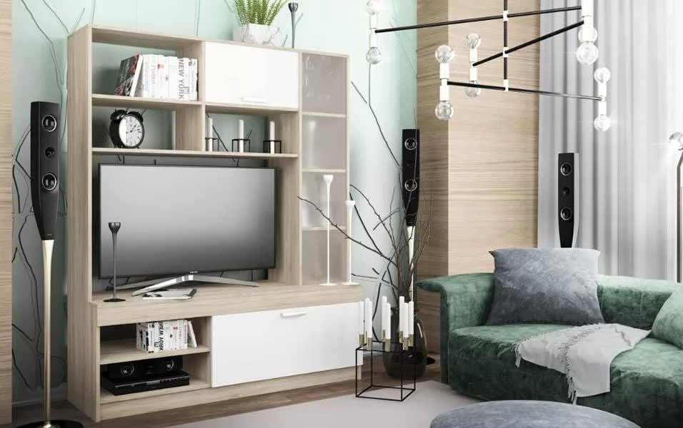 СОФИ СЦС1400.1 Гостиная №1 (ш1400*г450*в1725мм), ЛДСП дуб сонома/белый NEW в Тюмени