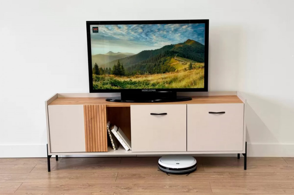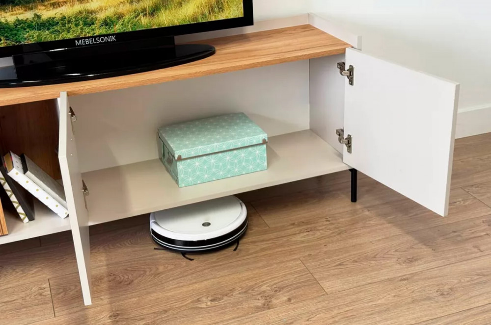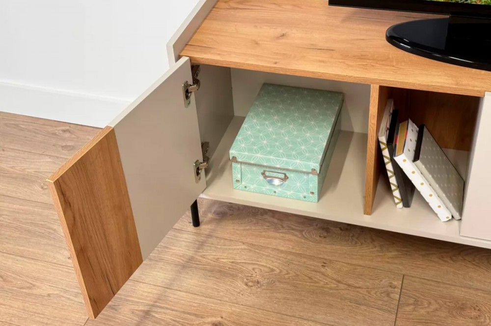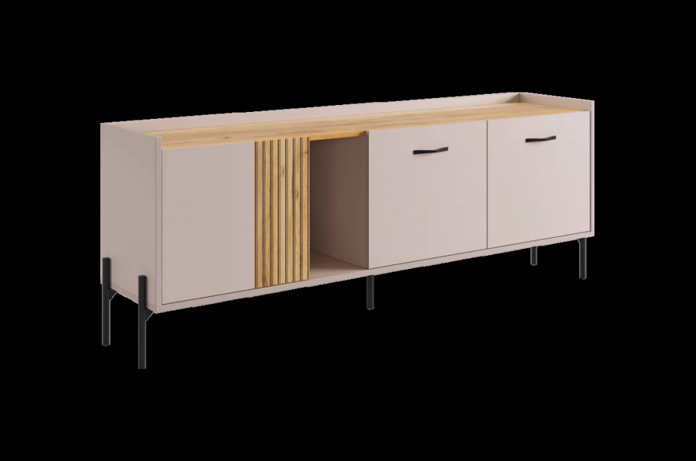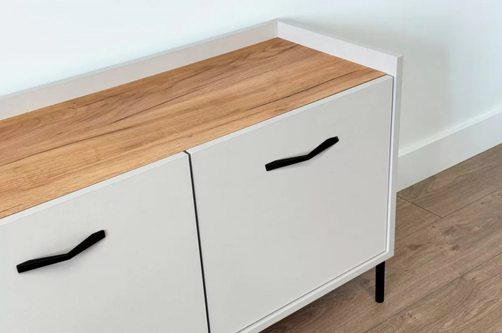Стильные металлические ручки придают тумбе современный и модный вид. Открытая ниша обеспечивает легкий доступ к вещам, которые вы используете часто, или может служить пространством для размещения медиа-устройств.