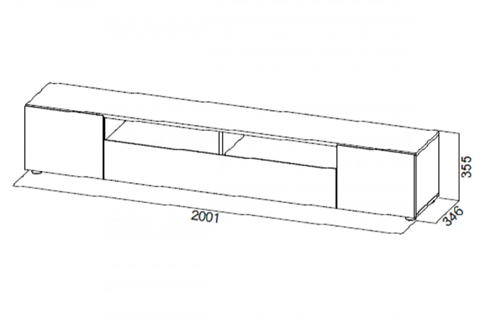 Габариты тумбы с опорами (ШхВхГ): 2001х355х346 мм