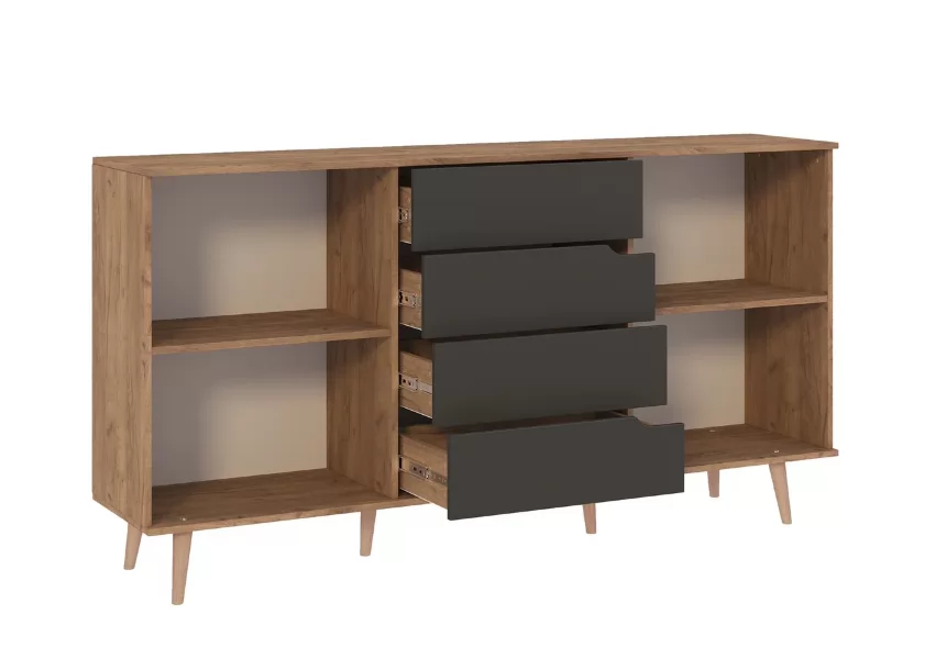 Тумба многофункциональная 6-56002 комплектуется 4 выдвижными ящиками и полками за распашными дверками.