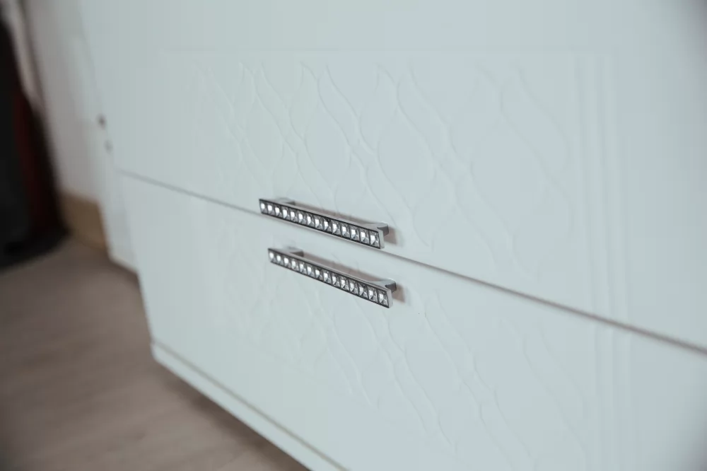 2. Фасады МДФ с фрезеровкой «Орхидея» украшены ручками с кристаллами.