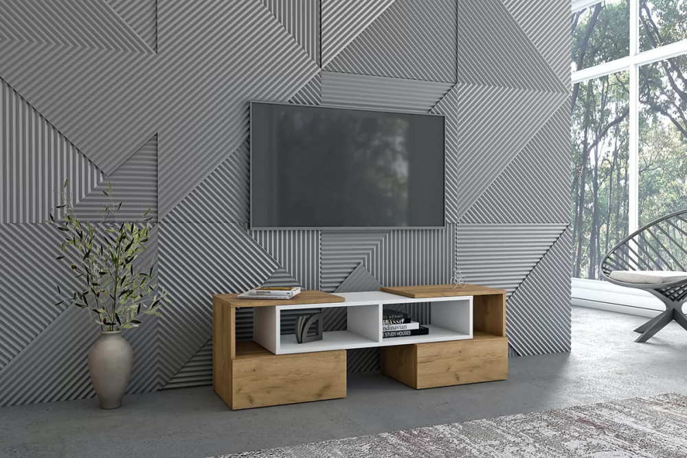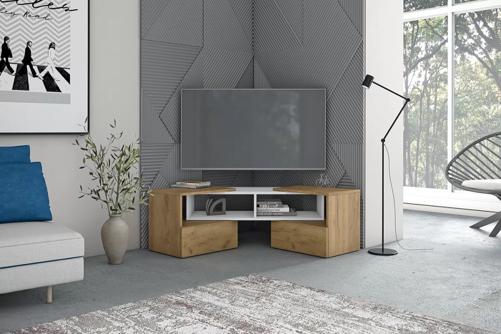Тумба ТВ раздвижная, дуб крафт золотой/белый Диал в Тюмени