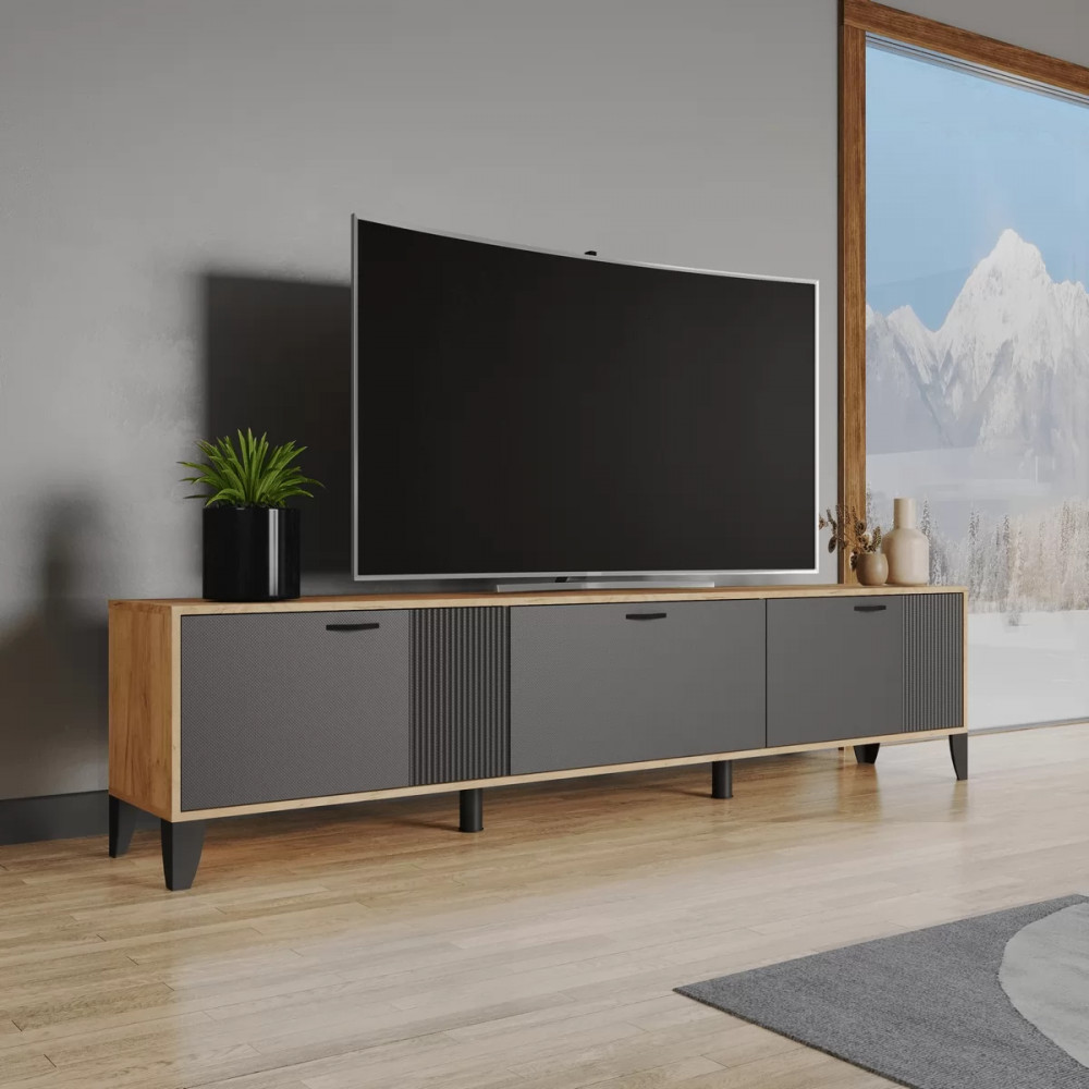 Тумба ТВМ-9 (с опорами) (ш2200*г368*в393мм) ЛДСП Дуб крафт золотой /ЛДСП Карбон вулкан в Тюмени
