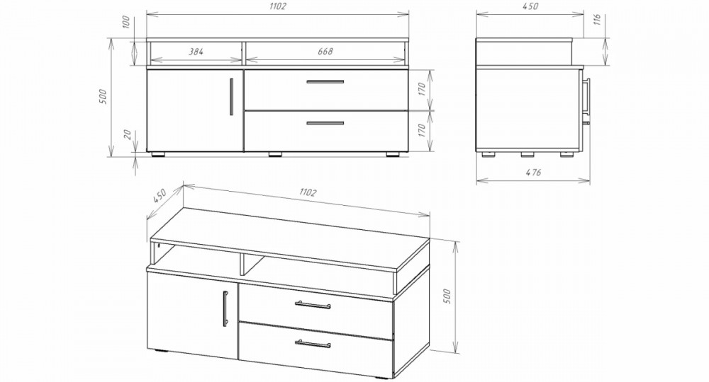 | Размер(Ш*Г*В) | 1102*450*500 мм |