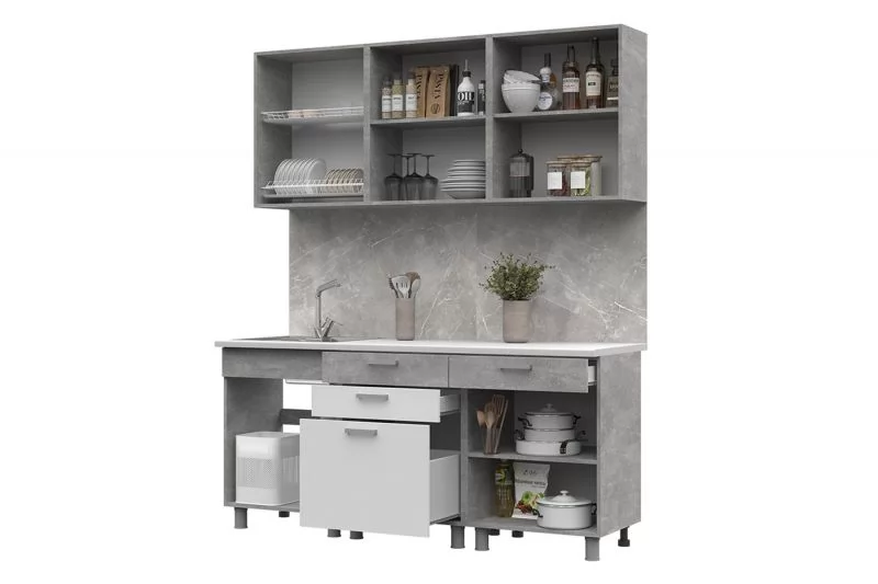 5)Верхний модуль 600 мм комбинация из открытых и закрытых полок.