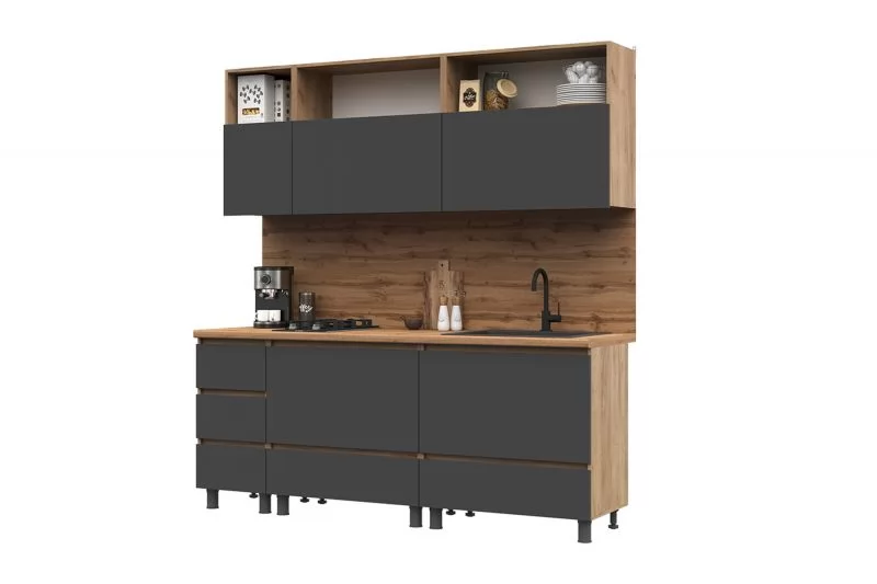 ХЕЛЕН Кухня 2.0м, ЛДСП Дуб Крафт Золотой/ЛДСП Серый графи ПФ(38) Вотан-2м цельная (б/сушки, б/мойки) G25483 в Тюмени