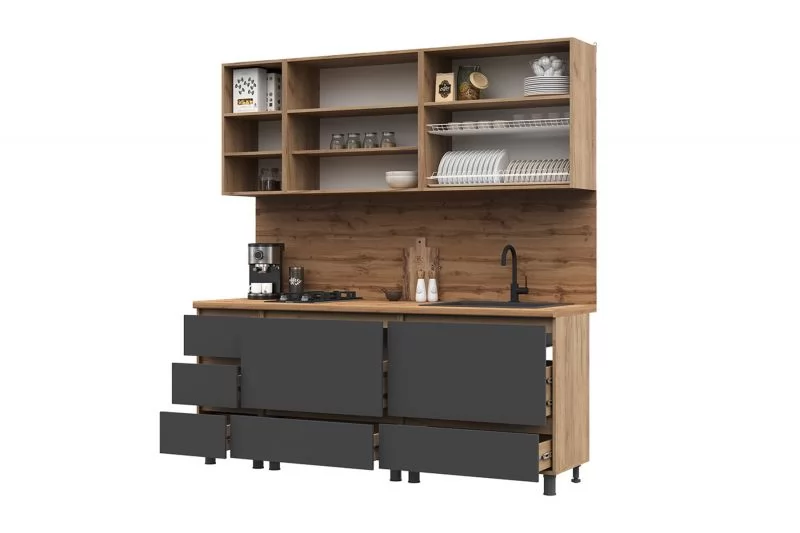 Габаритный размеры нижних модулей ШхВхГ мм: 2000х820х600 мм. (С учетом высоты опор и столешницы).