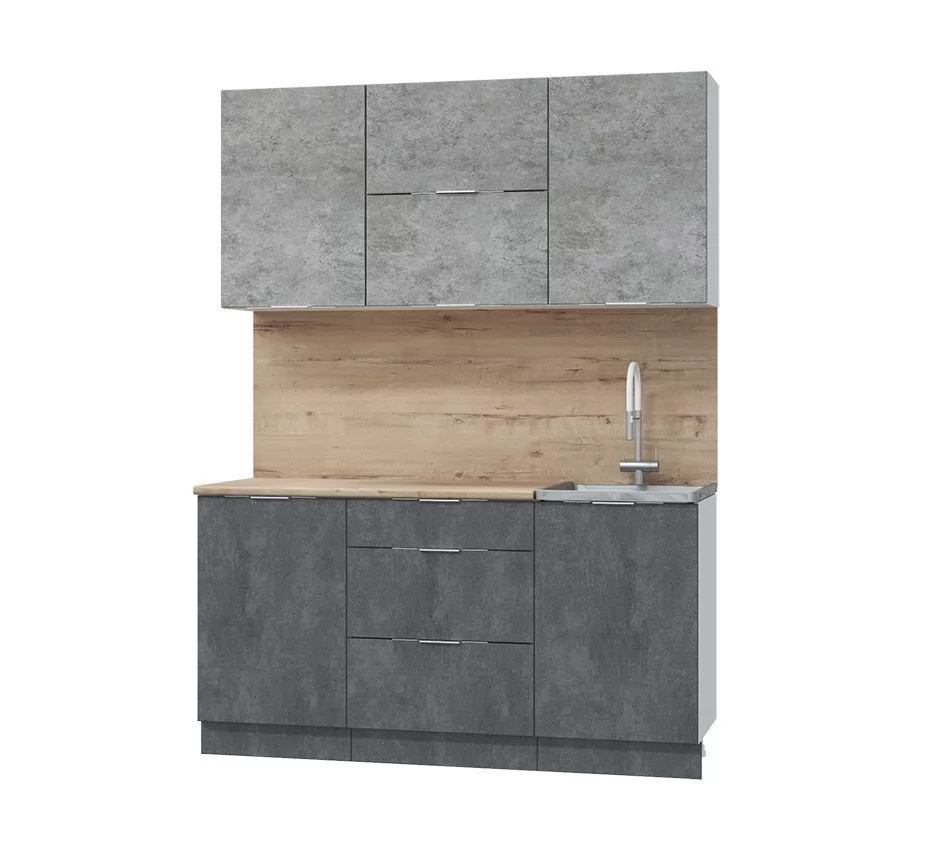Кух. гарнитур Асти-бетон 1.6, белый/бетон светлый/ бетон темный/ ПФ дуб бунратти (б/с 500) в Тюмени