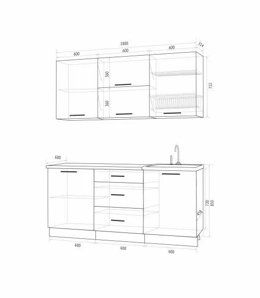 Высота верхних шкафов, мм: 722
