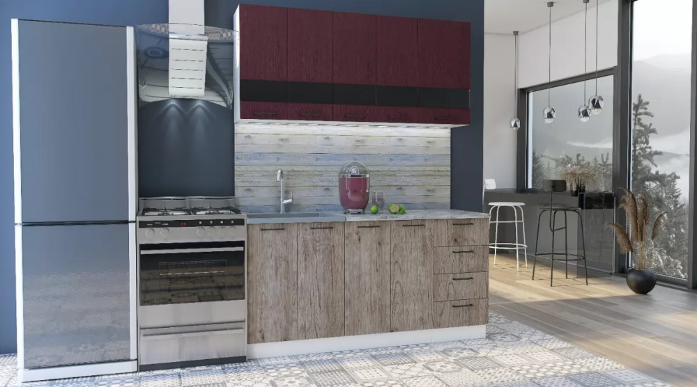 Кухня 1,6 м "Астра" красное дерево патина/Дуб галиано в Тюмени