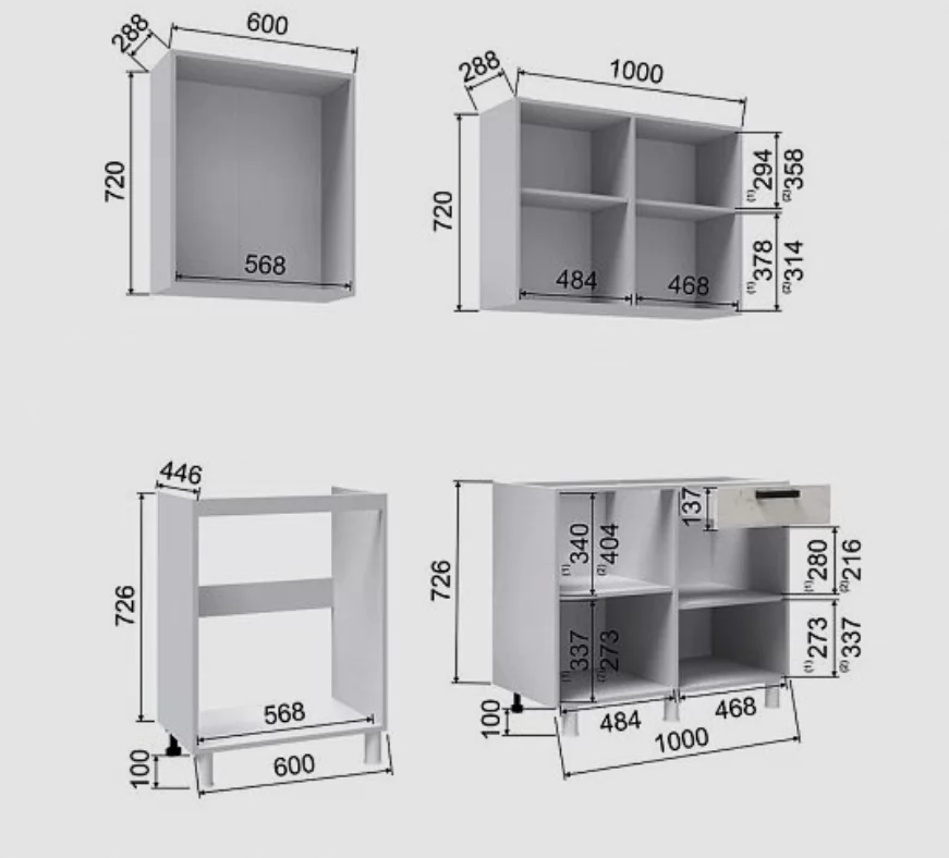 Цоколь, столешница, стеновая панель, посудосушитель в комплет не входят.