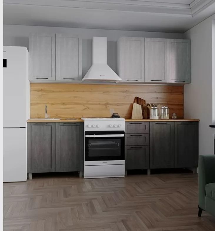 Цоколь, столешница, стеновая панель, посудосушитель в комплект не входят.