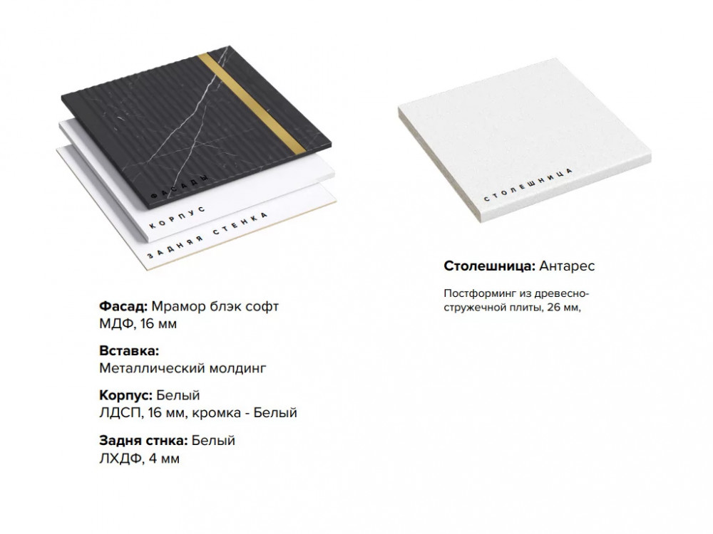 - Фасад: Мрамор Блэк софт МДФ, 16 мм