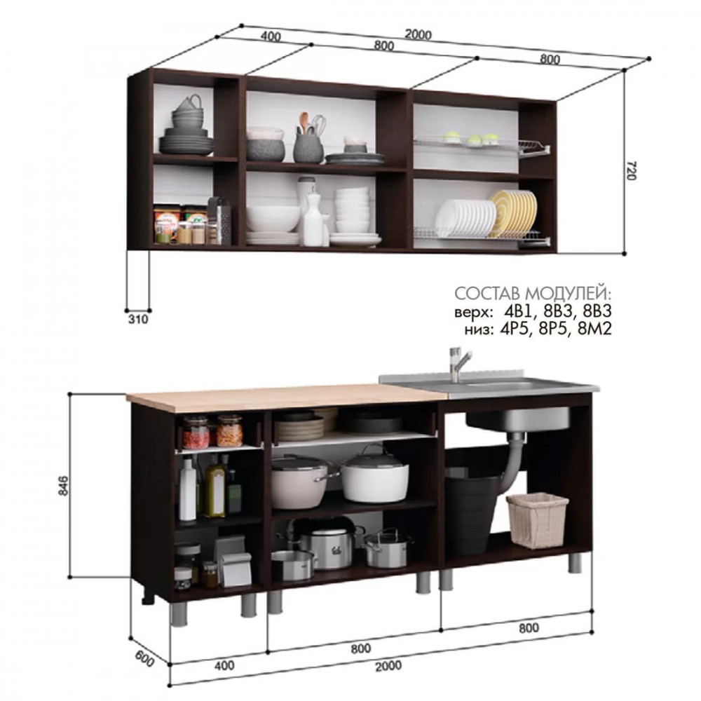 Низ - ШхВхГ (мм) - 2000х846х600: