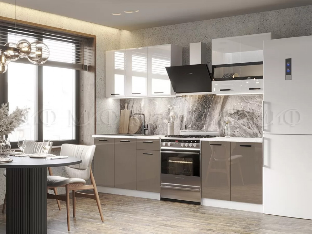 Кухня Рио 2,0м (Белый глянец холодный/Капучино (Кастилло)) в Тюмени
