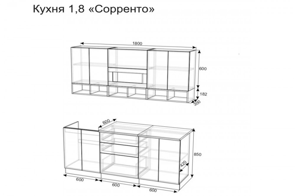 Кухня укомплектована столешницей шириной 600мм. и 600мм., толщиной 26мм.