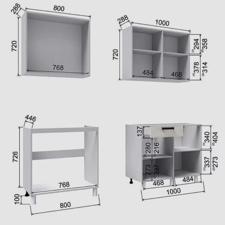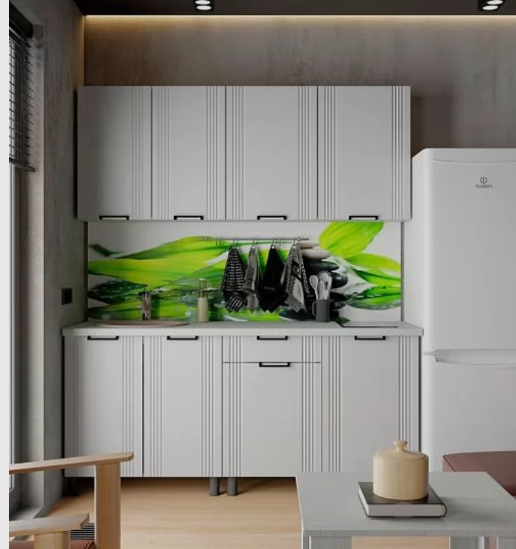Цоколь, столешница, стеновая панель, посудосушитель в комплект не входят.