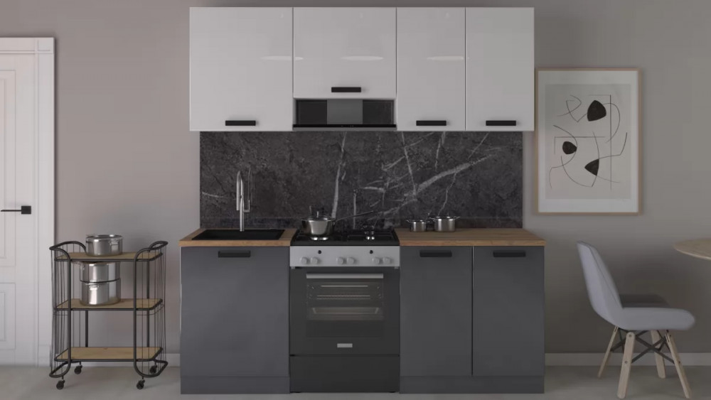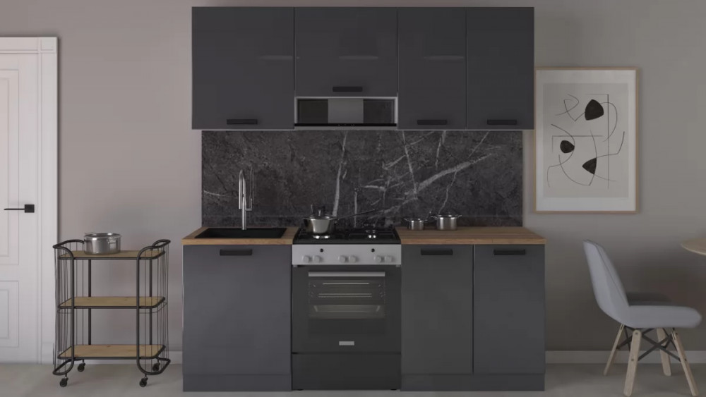 Габаритный размер готового набора модулей с учетом газовой плиты на 60см: 200 см.