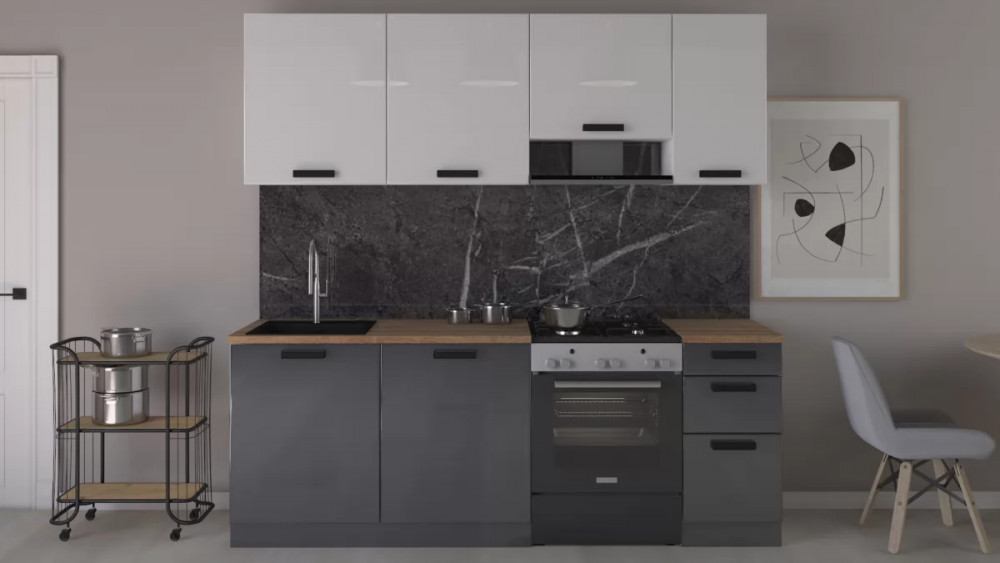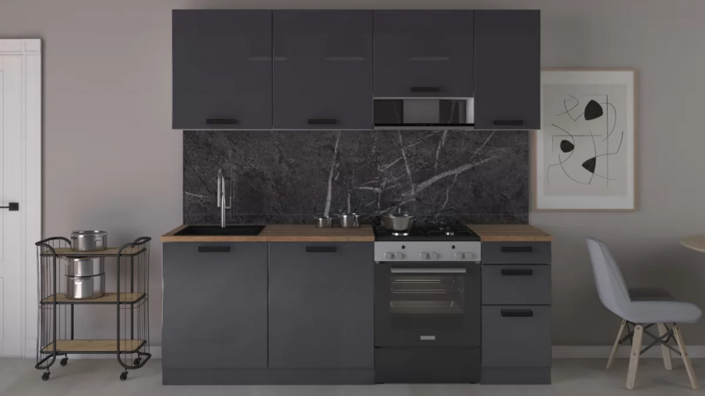 Габаритный размер готового набора модулей с учетом газовой плиты на 60см: 220 см.